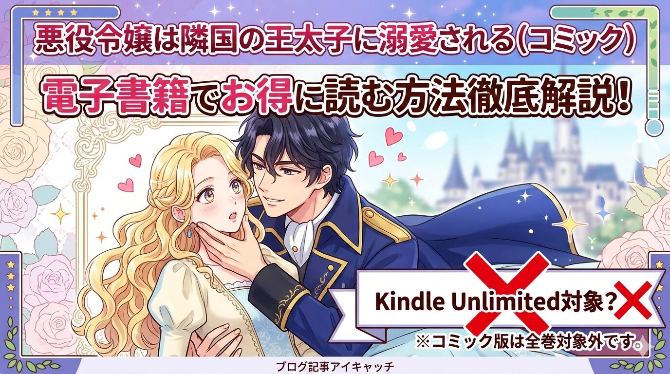 「悪役令嬢は隣国の王太子に溺愛される」のコミック版をKindle Unlimitedで読めるか調べている方へ、結論からお伝えします。2026年2月現在、コミック版は全巻Kindle Unlimited対象外です。この記事では、全巻をお得に読む方法や作品の魅力、口コミ・評判まで徹底的にまとめました。