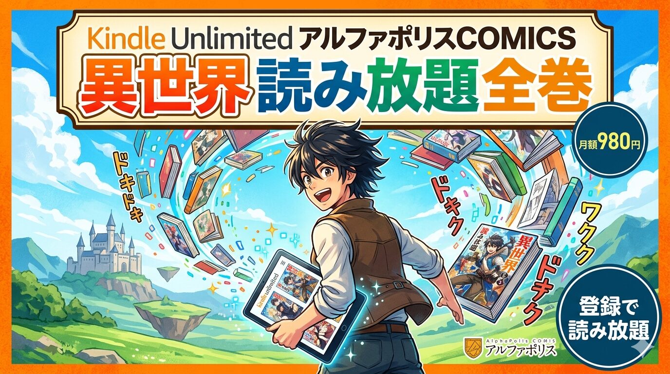 「アルファポリスCOMICSの異世界漫画をまとめて読みたいけど、全巻買うと高い…」そう感じている方に朗報です。実は、Kindle Unlimitedに登録すれば、アルファポリスCOMICSの異世界作品の一部が月額980円(税込)で読み放題になります。本記事では、2026年3月時点の配信状況やおすすめ作品、口コミまで徹底的にまとめました。