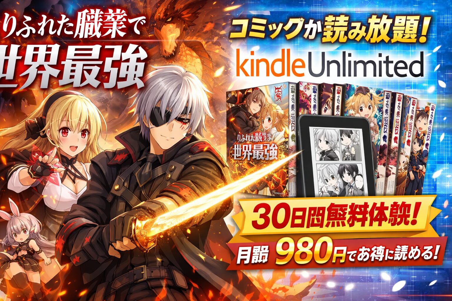 『ありふれた職業で世界最強』のコミック版をお得に読みたい方に朗報です。2026年3月時点で、Kindle Unlimitedではコミック版の一部巻が読み放題対象として配信されています。月額980円(税込)で複数巻をまとめ読みでき、さらに30日間の無料体験を使えば実質無料で試し読みが可能です。