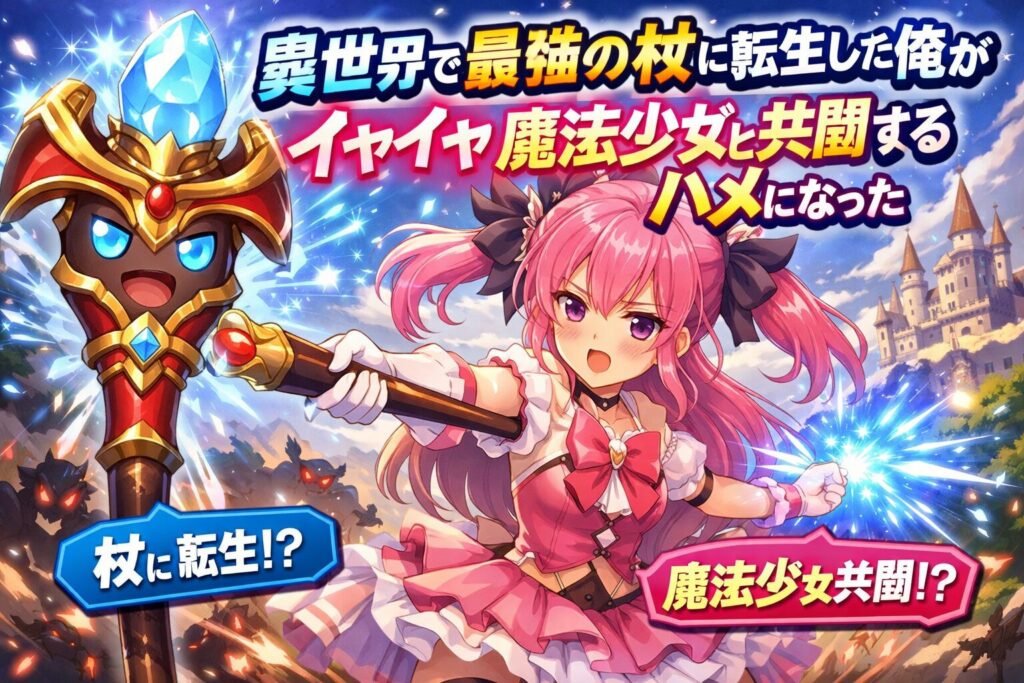 「異世界で最強の杖に転生した俺がイヤイヤ魔法少女と共闘するハメになった」で検索しているあなたへ。結論から言うと、このタイトルに完全一致する作品は確認できませんでしたが、非常によく似た実在作品『異世界で最強の杖に転生した俺が嫌がる少女をム...