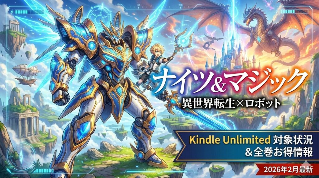 異世界転生×ロボットという唯一無二のジャンルで根強い人気を誇る『ナイツ&マジック』。漫画版・小説版ともにKindle Unlimitedで読めるのか、2026年2月時点の最新対象状況を徹底調査しました。結論から言うと、漫画版の一部(1巻程度)がKindle Unlimited...