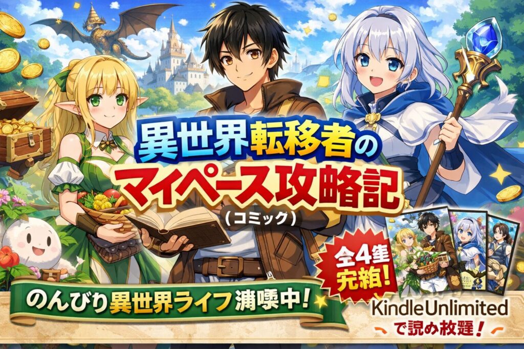 「異世界転生者のマイペース攻略記(コミック)」で検索しているあなたへ。正式タイトルは「異世界転移者のマイペース攻略記」で、コミック版は全4巻完結済みです。本記事では、Kindle Unlimitedの対象状況や全巻をお得に読む方法、読者の口コミ・評判まで... -