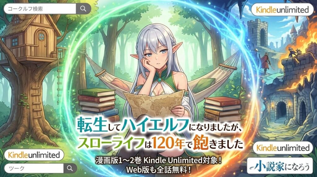 『転生してハイエルフになりましたが、スローライフは120年で飽きました』はKindle Unlimitedで読める?漫画・ラノベの対象巻と最安で全巻読む方法【2026年最新】