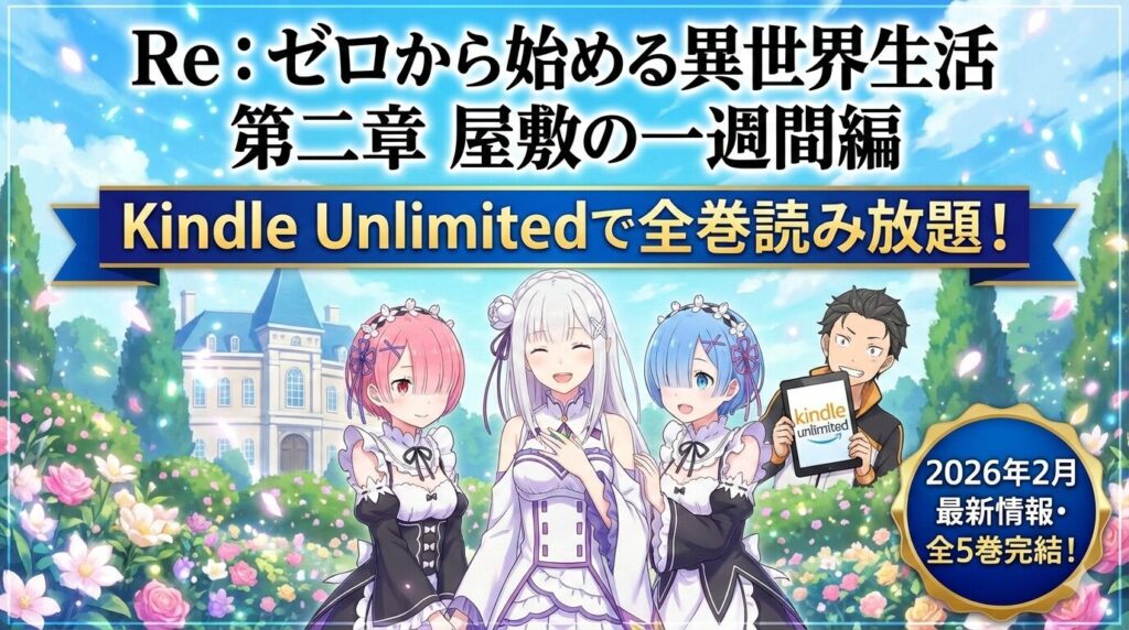 「Re:ゼロから始める異世界生活 第二章 屋敷の一週間編」はKindle Unlimitedで読める?結論と全巻のお得な読み方【2026年2月最新】