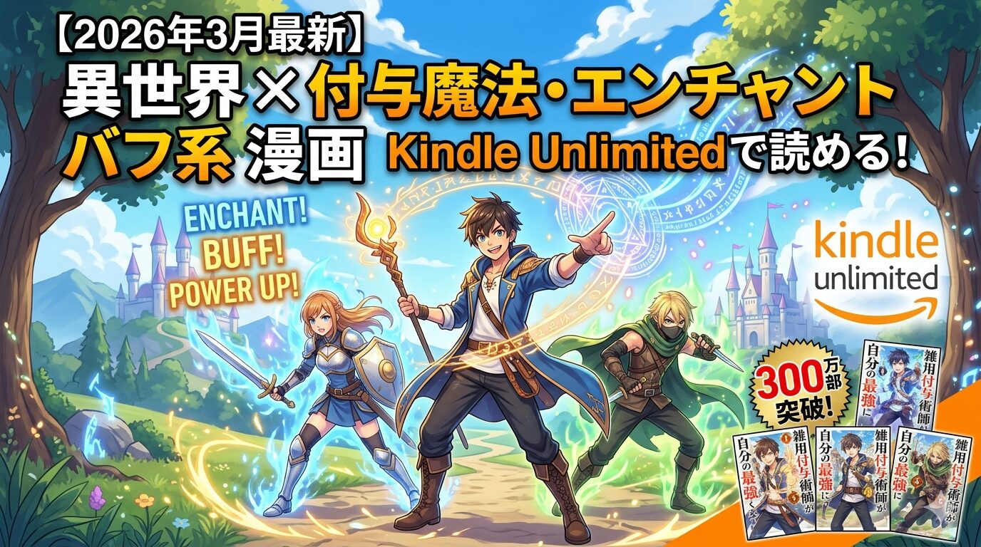 ※上記はいずれも「付与魔法」「エンチャント」「バフ系」に関連する要素を持つ異世界漫画です。Kindle Unlimitedでの対象状況は時期によって変動しますので、最新の配信状況はこちらのAmazon検索ページでご確認ください。