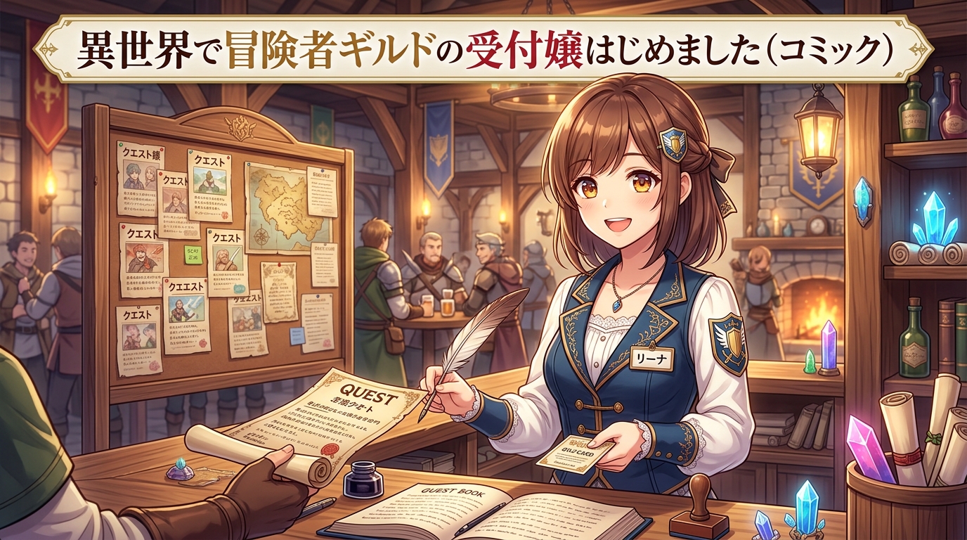 2026年2月23日時点で、「異世界で冒険者ギルドの受付嬢はじめました」という正確なタイトルのコミック作品は、主要な電子書籍サービスや出版社のカタログでは確認できていません。ただし「異世界」「ギルド」「受付嬢」というキーワードに一致する人気コミック作品は複数存在しますので、お探しの作品はそれらのいずれかである可能性があります。