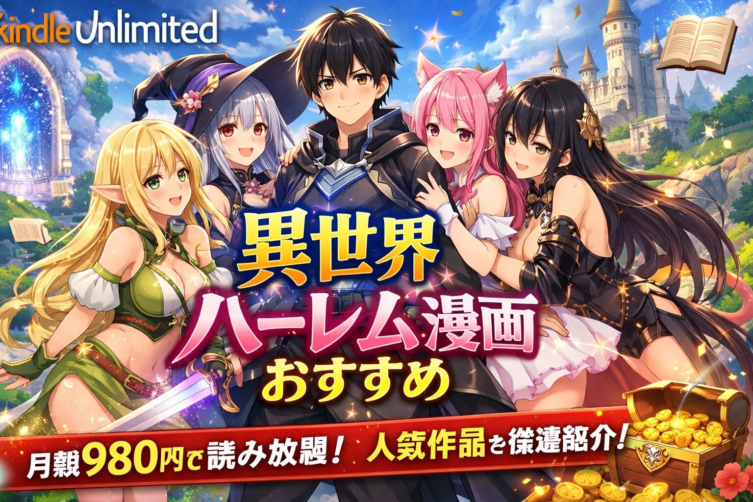 異世界転生・転移でチート能力を手に入れ、魅力的なヒロインたちに囲まれるハーレム展開――そんな「全部入り」の漫画を思う存分読みたいなら、Kindle Unlimitedが最強の選択肢です。月額980円(税込)で200万冊以上が読み放題になるこのサービスには、異世界ハーレム漫画の人気作が多数ラインナップされています。この記事では、2026年3月時点でKindle Unlimitedの読み放題対象となっている異世界ハーレム漫画のおすすめ作品を厳選して紹介します。
