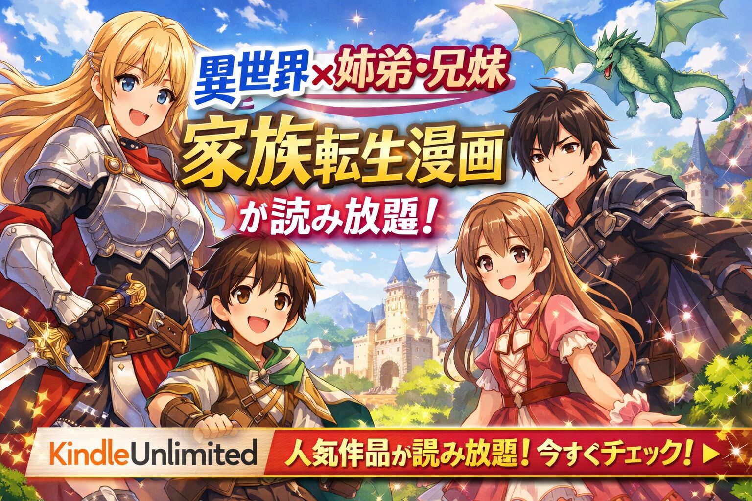 異世界に転生したのは自分だけじゃなかった――姉弟や兄妹、家族まるごと異世界に飛ばされる「家族転生」ジャンルの漫画が、いまKindle Unlimitedで続々と読み放題対象になっています。月額980円(税込)で、気になる作品を一気読みできるチャンスです。この記事では、2026年3月最新の配信状況をもとに、おすすめ作品や口コミ、お得な読み方まで徹底的にまとめました。