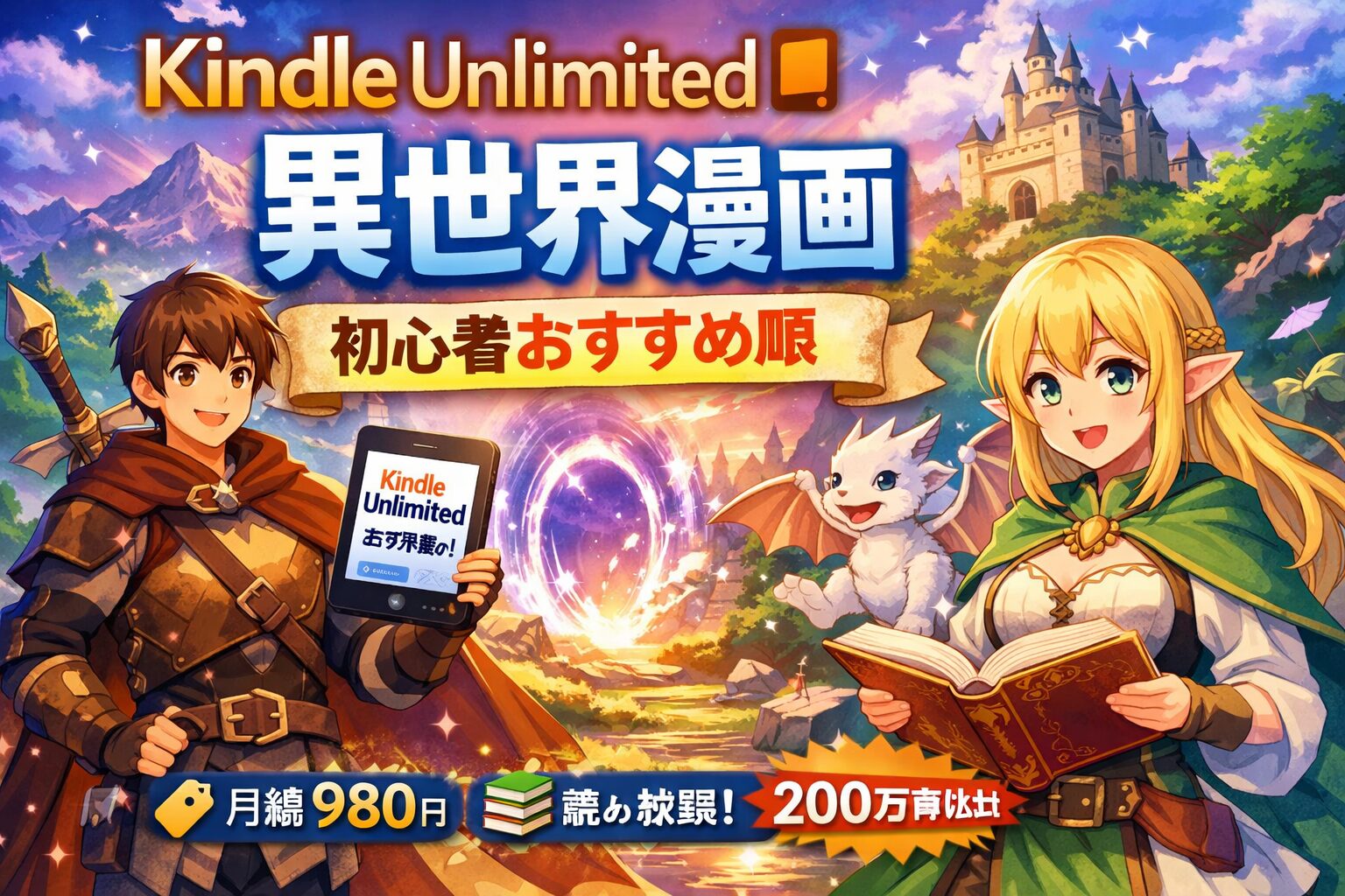異世界漫画を読みたいけれど、どれから読めばいいかわからない――そんな初心者の方に朗報です。Kindle Unlimitedなら月額980円(税込)で異世界漫画が読み放題。本記事では、初心者でも迷わず楽しめるおすすめ作品を厳選し、ジャンル別・読みやすさ順にご紹介します。