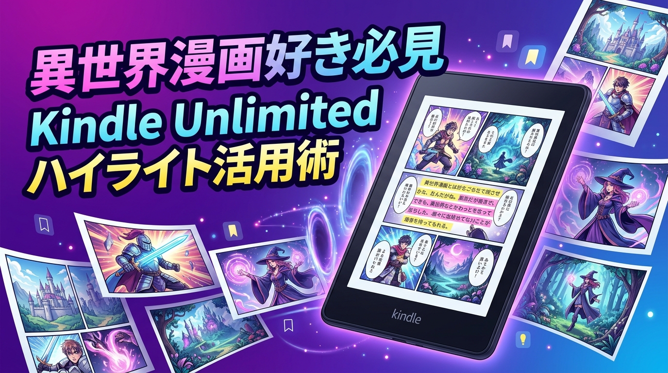異世界漫画をKindle Unlimitedで読み放題で楽しみつつ、Kindleのハイライト機能を使えば、お気に入りのセリフや世界設定を効率よく記録でき、読書体験が何倍にも広がります。本記事では、月額980円(税込)で異世界漫画を読み尽くしながら、ハイライト機能で読書の質を高める具体的な活用術を徹底解説します。