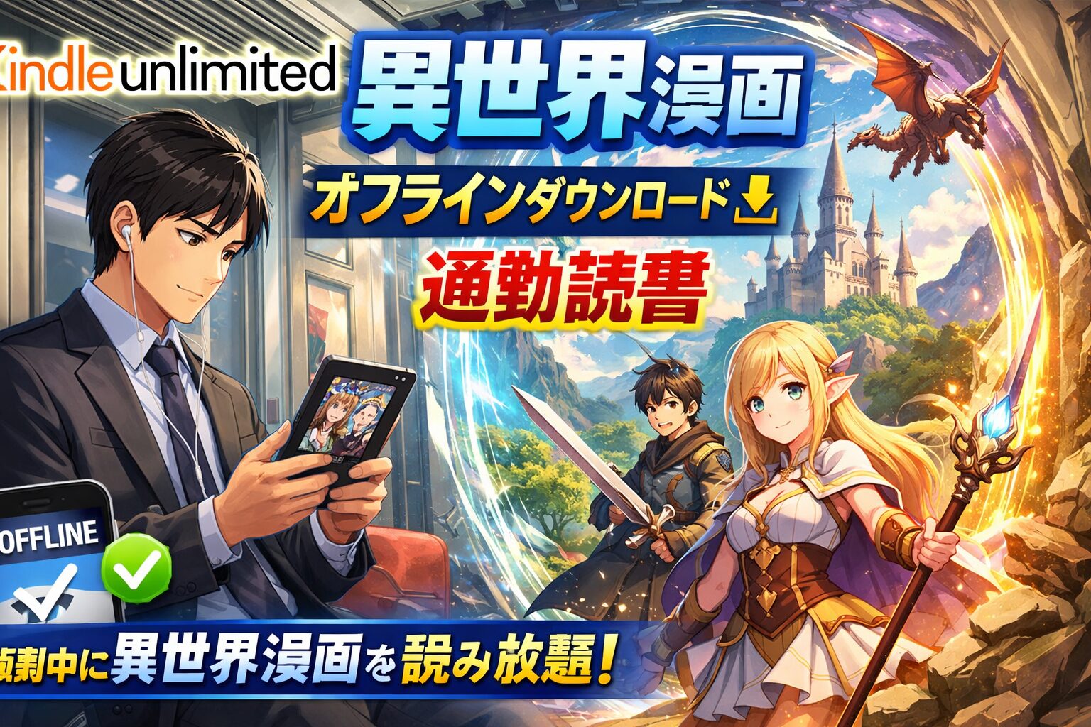 毎日の通勤時間、ただスマホをぼんやり眺めていませんか?実は月額980円(税込)のKindle Unlimitedなら、異世界漫画を事前にダウンロードしておくだけで、電波のない地下鉄でもオフラインで読み放題。通勤時間がまるで異世界への転移ゲートに変わります。
