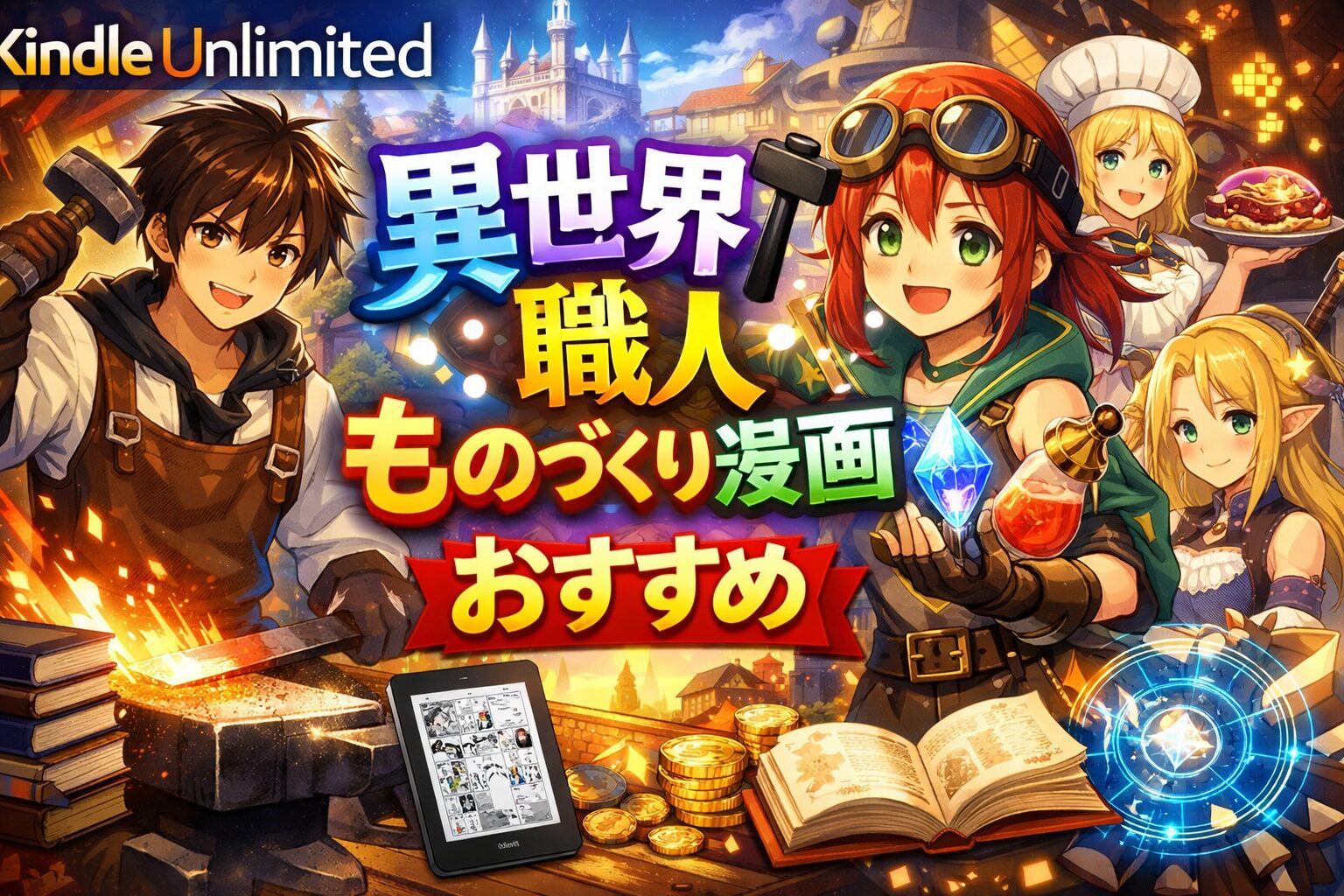 異世界に転生・転移した主人公が、鍛冶や魔導具制作、建築などの「ものづくり」で活躍する漫画を探していませんか?この記事では、Kindle Unlimitedの読み放題で楽しめる異世界職人・ものづくり系漫画のおすすめ作品を厳選して紹介します。月額980円(税込)で気になる作品を片っ端から試せるのが最大の魅力です。