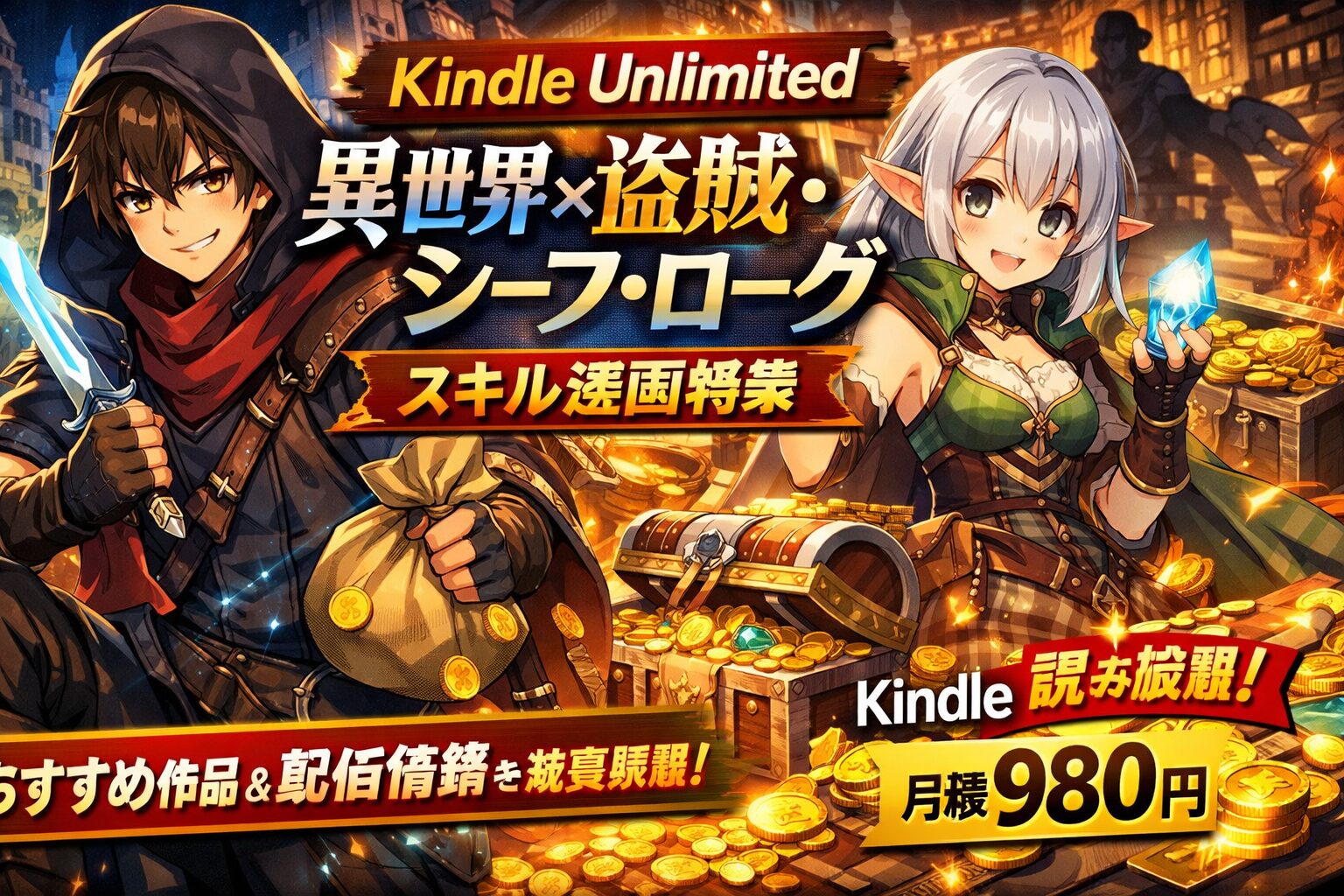 「異世界で盗賊やシーフ、ローグとして活躍するスキル系漫画をKindle Unlimitedで読みたい」とお考えの方へ、結論からお伝えします。2026年3月10日時点で、盗賊スキルをテーマにした異世界漫画・小説の中にはKindle Unlimited読み放題対象の作品が存在し、月額980円(税込)で気軽に楽しめます。