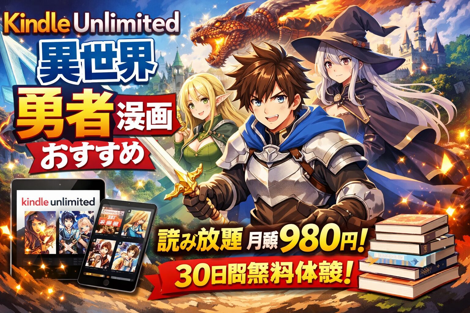 異世界に召喚された勇者、追放された勇者、カンストした勇者――「勇者」をテーマにした異世界漫画をKindle Unlimitedの読み放題で楽しみたい方に向けて、月額980円(税込)で読める注目作品を厳選しました。30日間の無料体験を使えば、気になる作品をまとめて試し読みできます。
