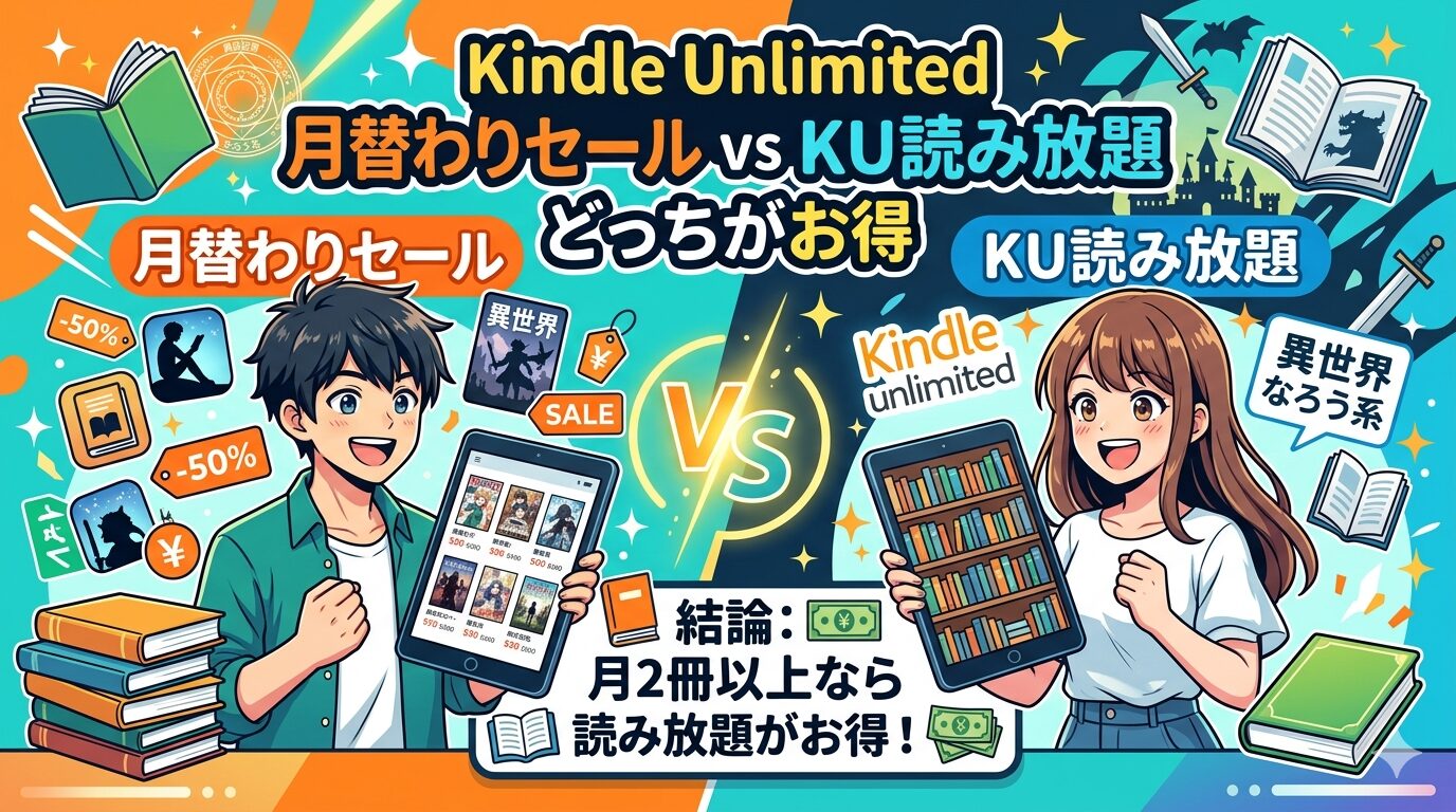 【2026年3月最新】Kindle Unlimited月替わりセールとKU読み放題はどっちがお得?異世界・なろう系ファン必見の徹底比較
