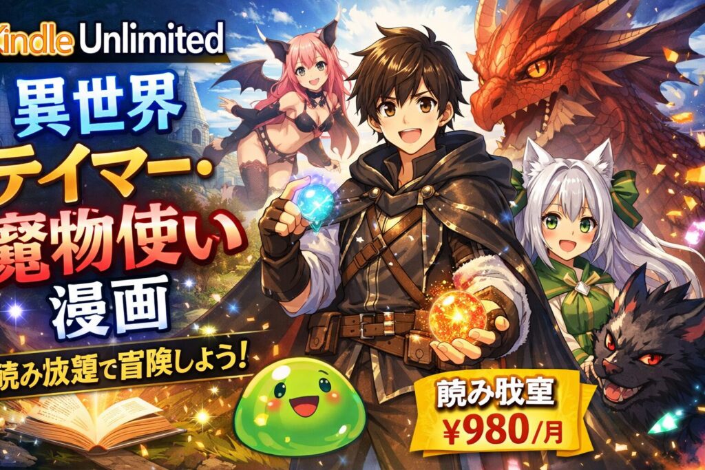 異世界でモンスターをテイムして冒険する「テイマー・魔物使い」ジャンルの漫画を、Kindle Unlimitedの読み放題で楽しみたい方は多いのではないでしょうか。結論として、2026年3月現在、異世界テイマー・魔物使い系の漫画はKindle Unlimitedで複数作品が読... -
