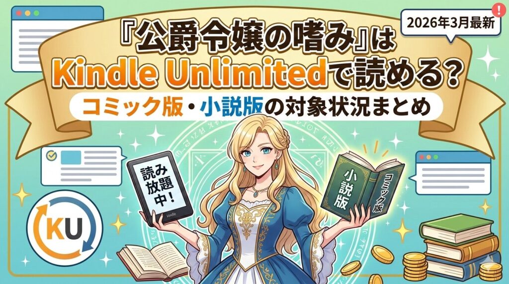 『公爵令嬢の嗜み』はKindle Unlimitedで読める?コミック版・小説版の対象状況とお得な読み方を徹底解説【2026年3月最新】 「小説家になろう」発の大人気悪役令嬢×内政ファンタジー『公爵令嬢の嗜み』をお得に読みたいとお考えではないでしょうか。結論か...