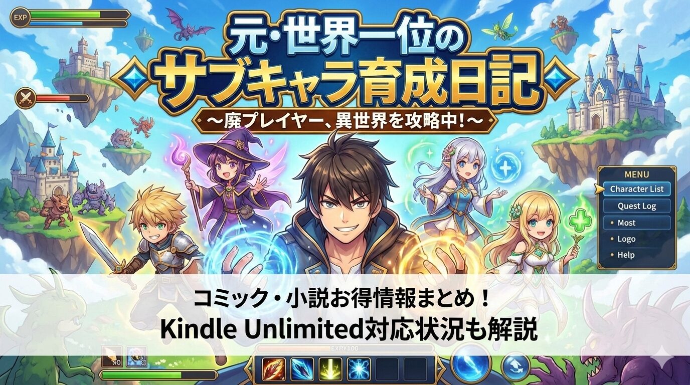 「元・世界1位のサブキャラ育成日記(セカサブ)」をお得に読みたい方へ。結論から言うと、コミック版(漫画)は複数巻がKindle Unlimitedの読み放題対象ですが、小説版(ラノベ)は対象外です。本記事では、Kindle Unlimited対象巻の最新状況、全巻をお得に読む方法、読者の口コミ・評判まで2026年2月時点の情報を網羅的にまとめました。