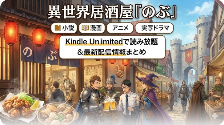 異世界居酒屋「のぶ」の無料配信・あらすじ・見る順番を2026年2月最新情報で解説。Kindle Unlimitedならコミック1〜10巻+小説全7巻が読み放題で約1万円お得。30日間無料体験で今すぐ読める完全ガイドです。